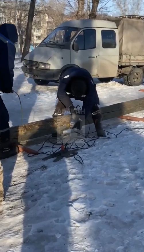 12-метровый столб готовят к предстоящей Масленице в Черногорском парке Абакана