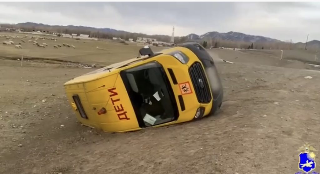 В Туве опрокинулся школьный автобус, водитель был пьян