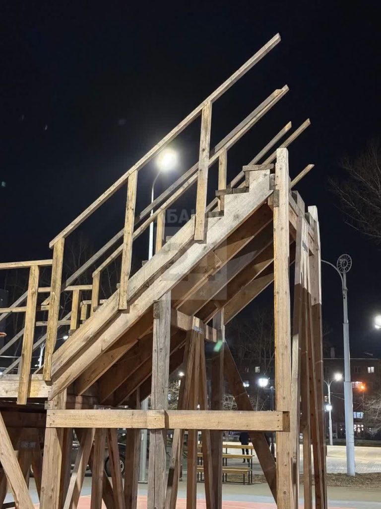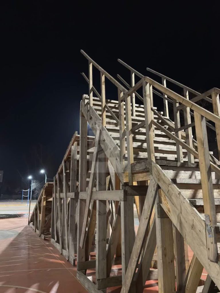 Сейчас на объект завозится пиломатериал и выполняются черновые работы. По завершению сборки каркаса будущих аттракционов, как установится стабильный минус, специалисты начнут завозить и резать лед.