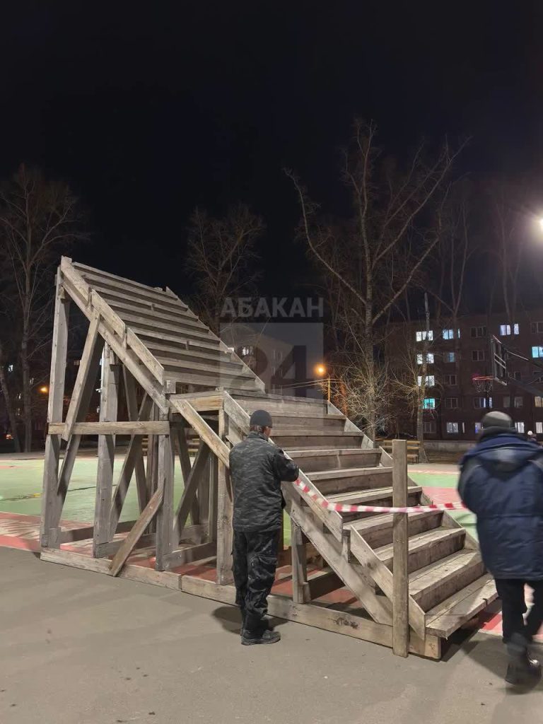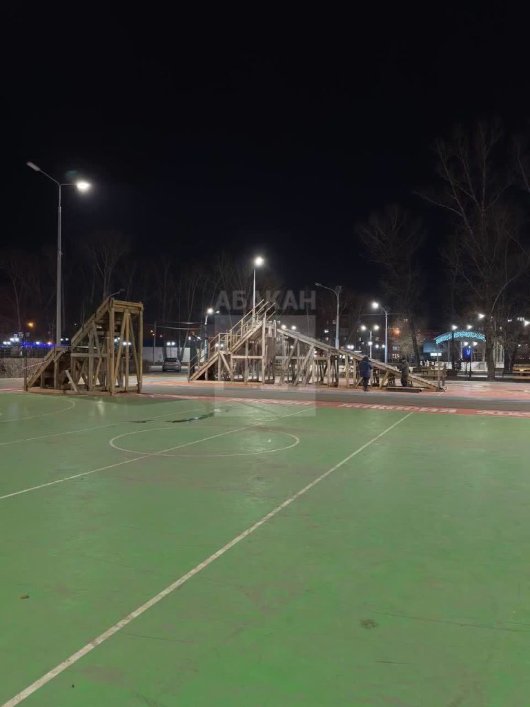 В Черногорском парке Абакана начался монтаж каркаса ледовых горок