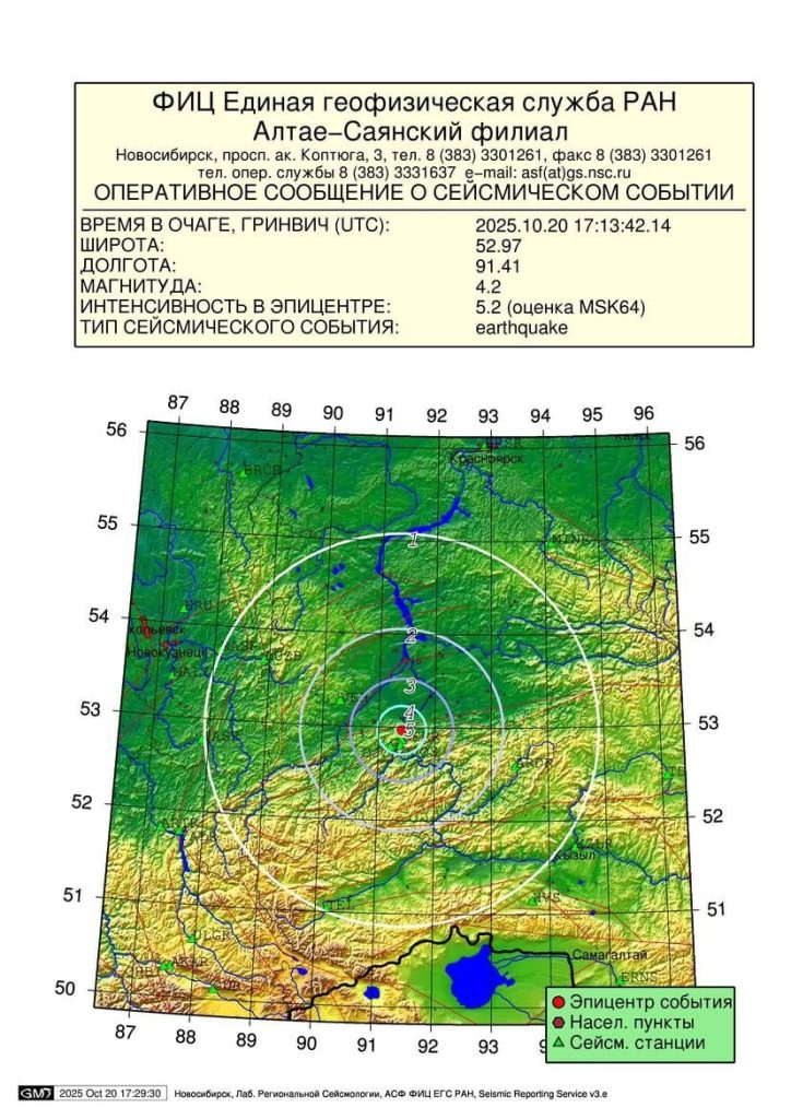 Землетрясение магнитудой 4,2 произошло этой ночью в Хакасии