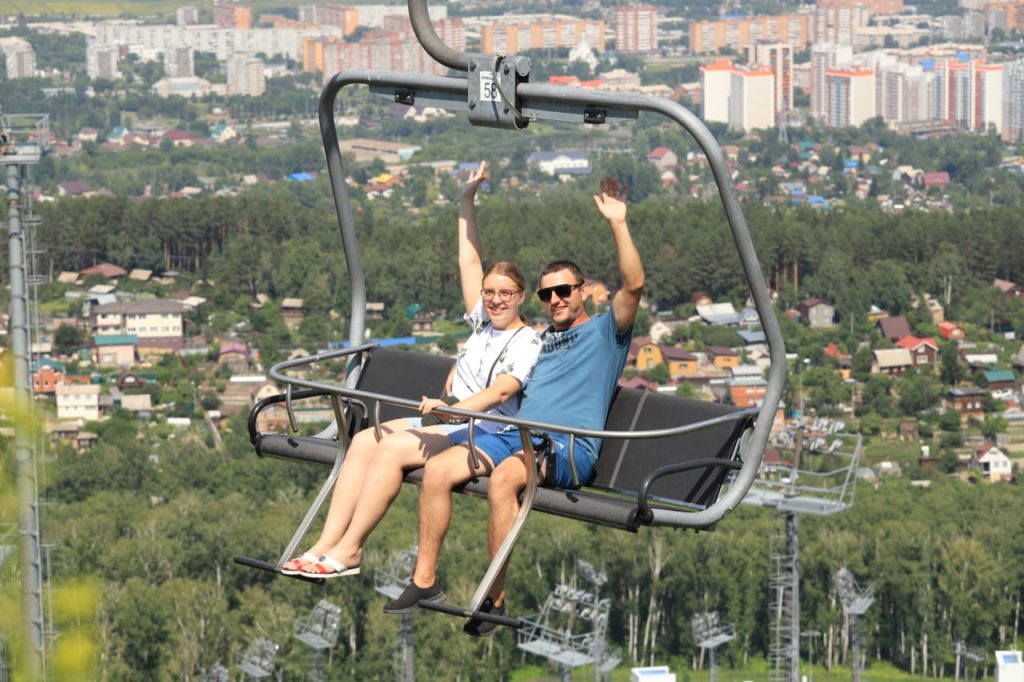 Еще одним развлечением для нас на сопке стала канатная дорога. Мы решили и спуститься, и подняться по ней, чтобы лучше рассмотреть гору. Оказалось, что она оборудована для зимних видов спорта, чем немного напомнила мне горы на Красной Поляне в Сочи.