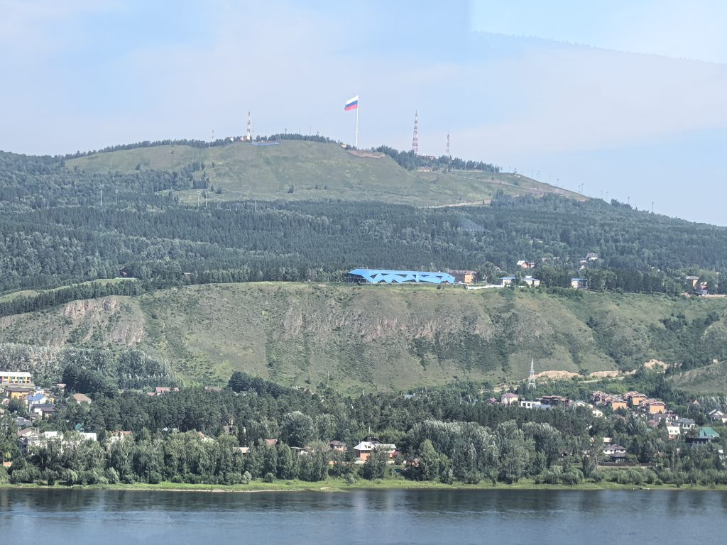 На следующий день нас ждали новые высоты. Знакомые еще до поездки советовали нам найти смотровую площадку с флагштоком, с которой также открывается отличный вид на Енисей и правый берег города. Площадка находится на Николаевской сопке, которая примечательна тем, что является самой высокой точкой Красноярска – ее высота 505 метров! Кроме того, сам флагшток с российским триколором считается самым высоким за Уралом.