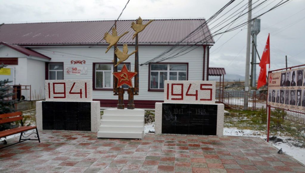 Памятник землякам — участникам Великой Отечественной войны предстал после капитальной реконструкции. Здесь заменены мемориальные доски с именами погибших героев, выполнена новая скульптурная композиция — по центру красная звезда, а на фоне штыков от винтовок взмывают журавли.