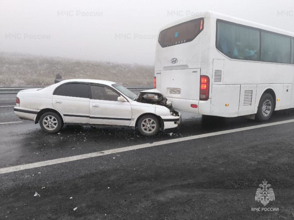 Дорожные полицейские сообщают- дорога на этом участке скользкая, осложняет видимость и туман.
