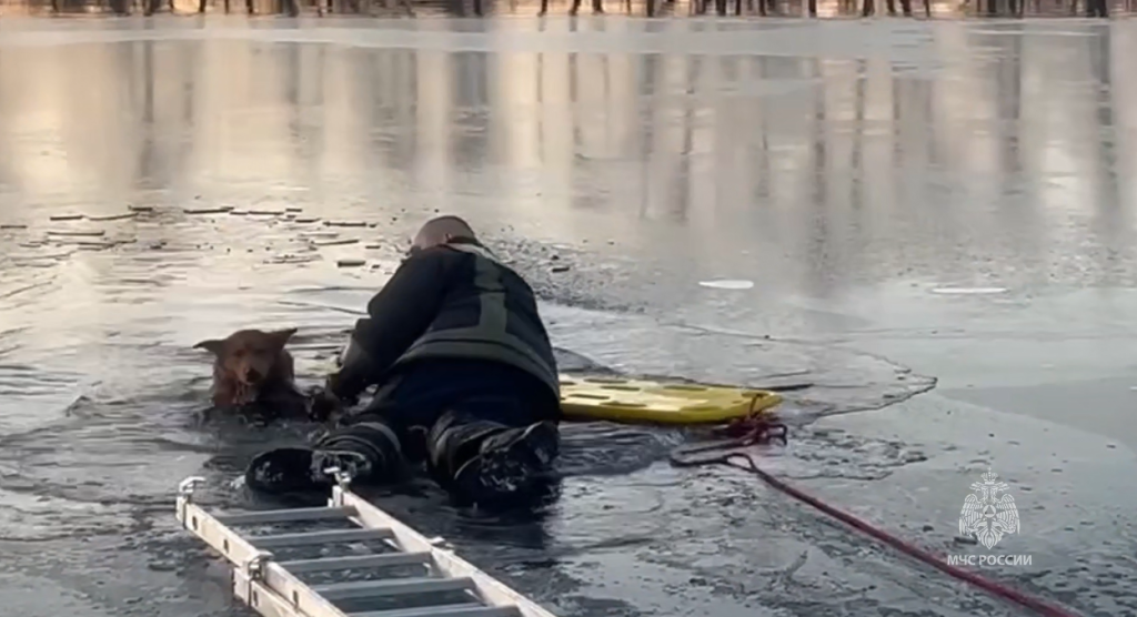 Очевидцы увидели, как хвостатый жалостно скулит и медленно уходит под воду у кромки льда. Они вызвали спасателей, а те оперативно отреагировали на вызов и вызволили бедолагу из ледяного плена.