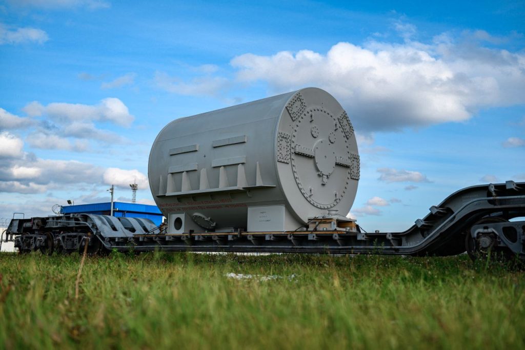 Это самый крупный элемент из комплекта нового оборудования — его вес 87 тонн. Доставлен из Новосибирска.