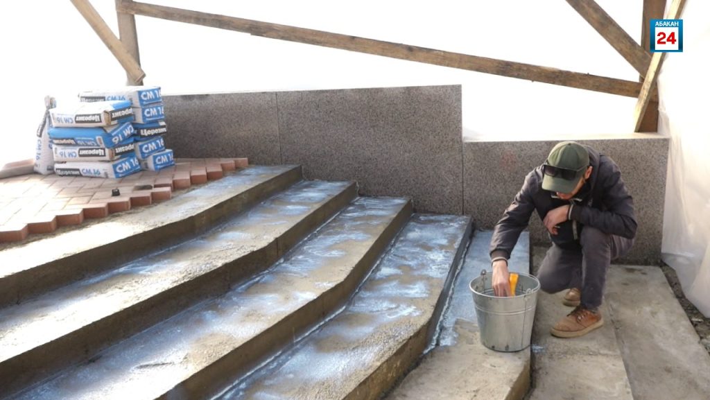 Долговечный материал приехал из Саяногорска, он сменит старую керамогранитную облицовку, что за годы службы обветшала и износилась -появились трещины и сколы.