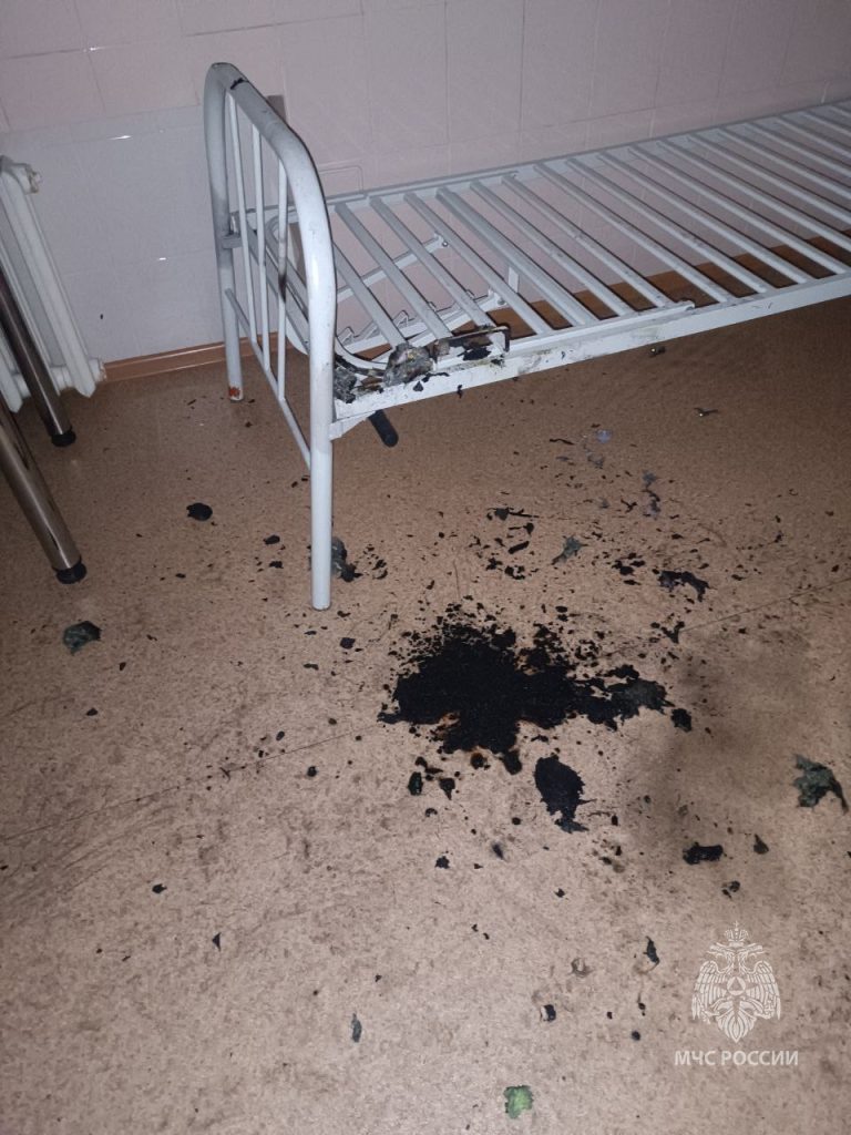 Всё случилось поздним вечером в детском отделении. К моменту прибытия огнеборцев в палате на втором этаже тлел матрас, успел прогореть и линолеум. Здание покинули 14 человек.